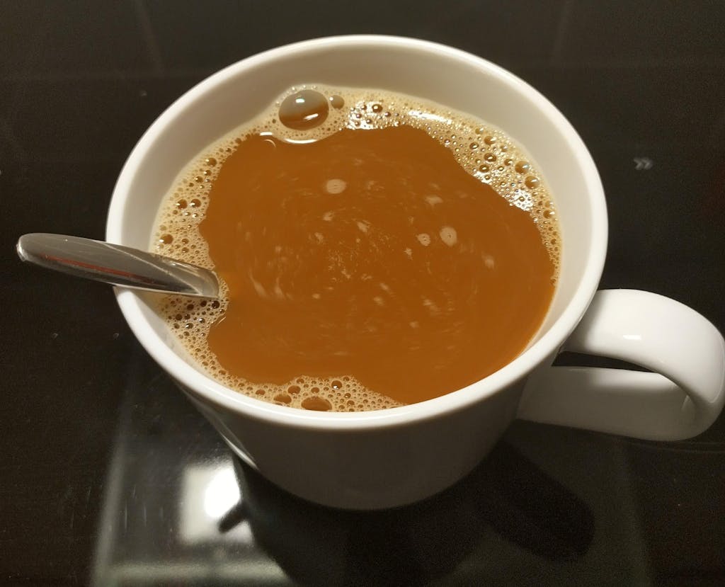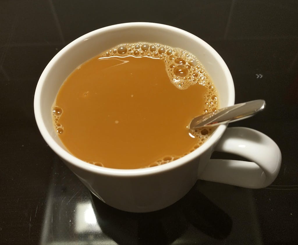 Itse käytän kotona pikakahvia, ja kuvista näkyy kahvin väri 2 vs. 4 teelusikallisen (kukkuralliset) jälkeen - aika paljon saa mielestäni laittaa jauhetta jos haluaa "valkoisen" kahvin - mutta 800 g pussista tulee peräti 8 litraa kaurajuomaa/maitoa, joten 🤷♀️